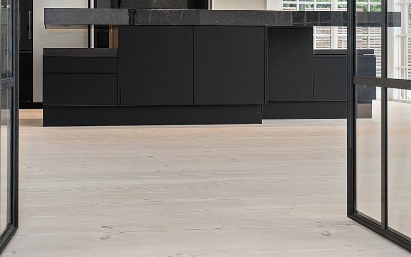 Wide planks from old, slow-growing trees in Danish and German forests. A light and exclusive choice with a distinctive grain pattern – ideal for spacious, bright interiors.